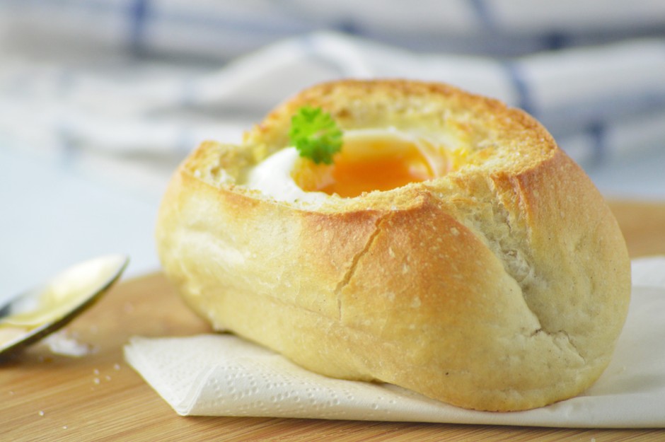 Gebackene Eier im Brötchen – „Oeufs en petit pain“