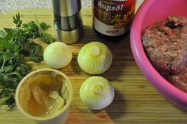 - 500 g gemischtes Hackfleisch (halb Schwein, halb Rind)
